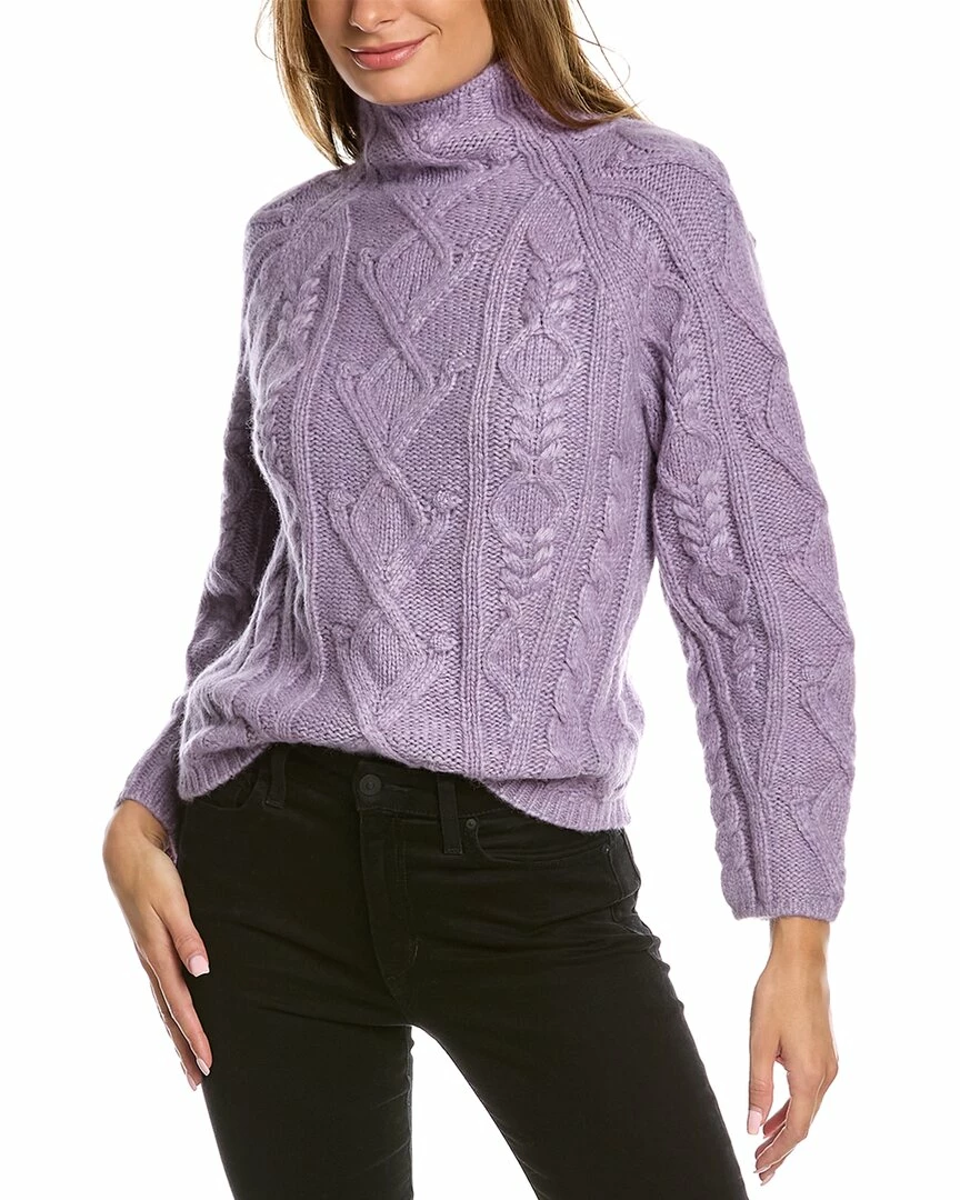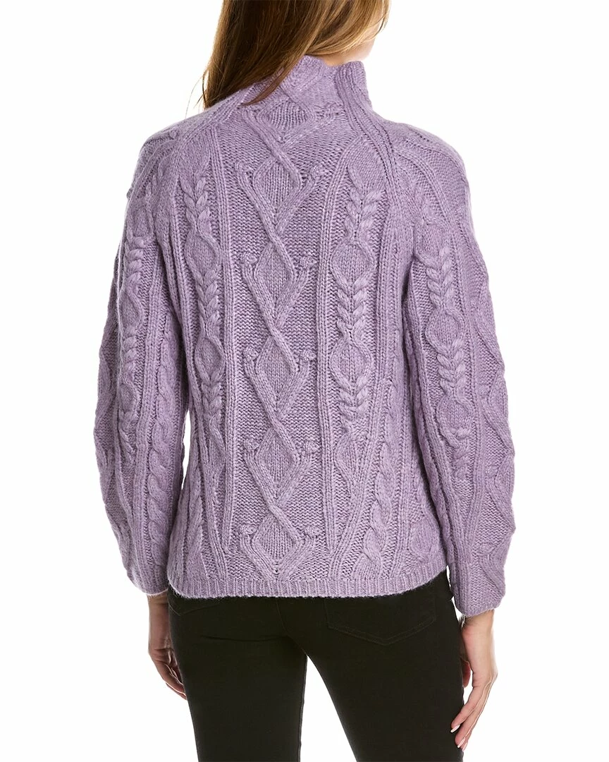 - Aran Raglan Mock Neck Alpaca & Wool-Blend Sweater in white lilac with plush textured knit, mock neck and raglan sleeves