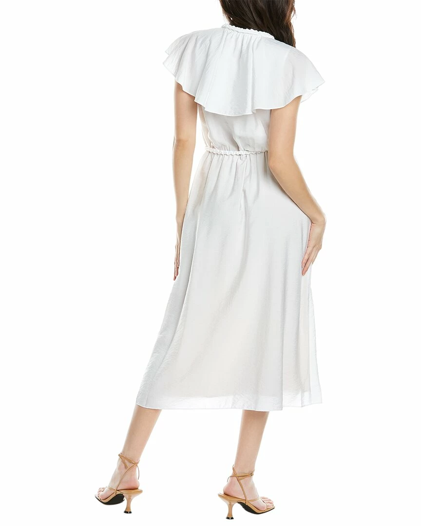 - Braided Belt Wrap Dress in optic white with flutter sleeves, braided trim, and pleat details