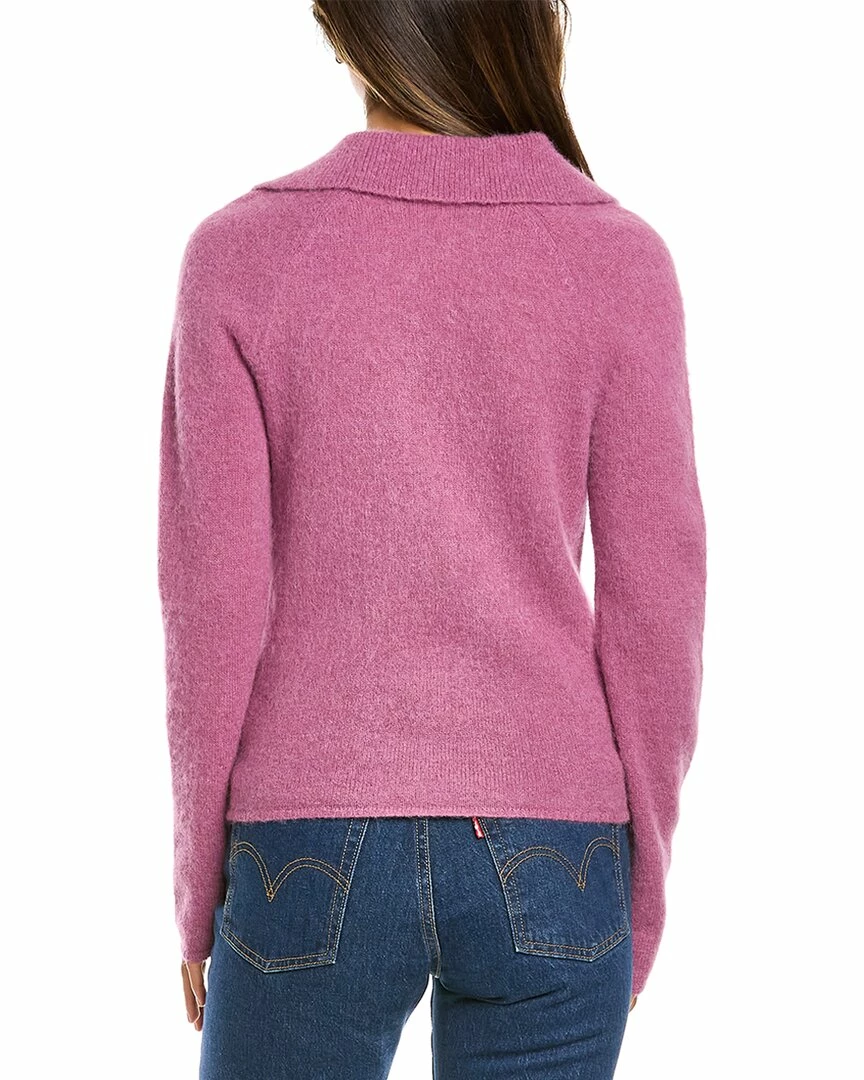 - Brushed V-Neck Polo Alpaca & Wool-Blend Sweater in dark hollyhock with V-neck and spread collar