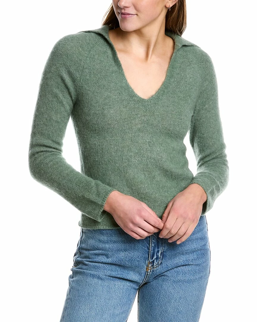 Vince Brushed V-Neck Polo Alpaca & Wool-Blend Sweater Women Sweaters & Knits
