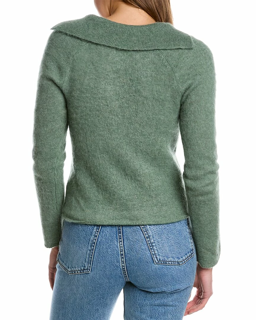 - Brushed V-Neck Polo Alpaca & Wool-Blend Sweater in jadeite with V-neck and spread collar