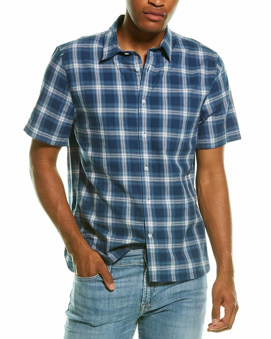 Vince Classic Fit Moonlit Shadow Plaid Shirt Men Casual Button Downs