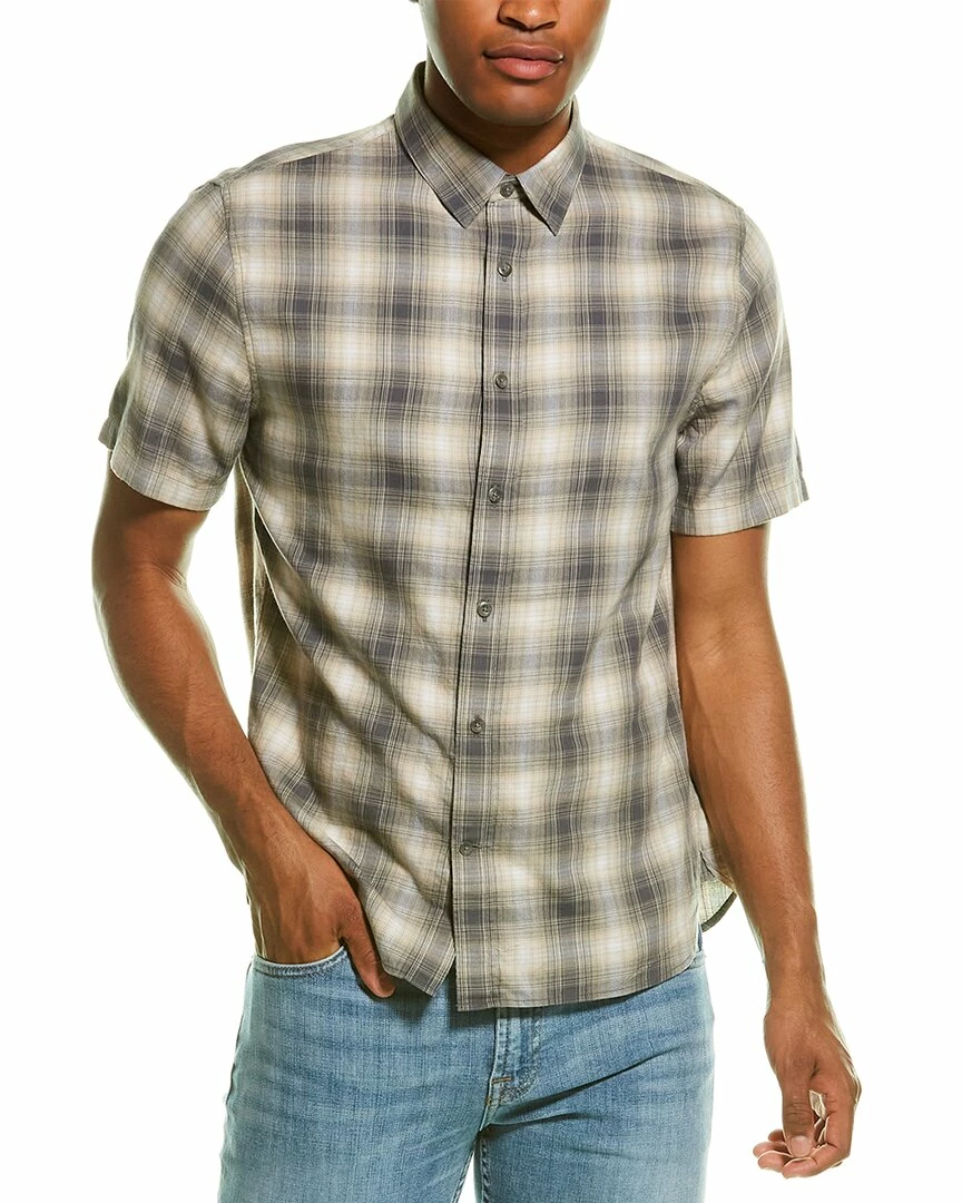 Vince Classic Fit Oceanview Plaid Shirt Men Casual Button Downs