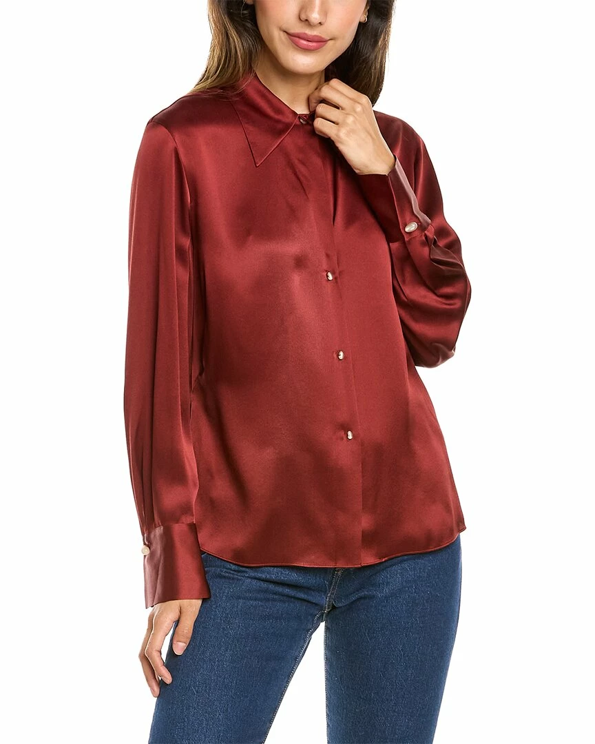 Vince Fitted Shaped Collar Silk Blouse Women Tops