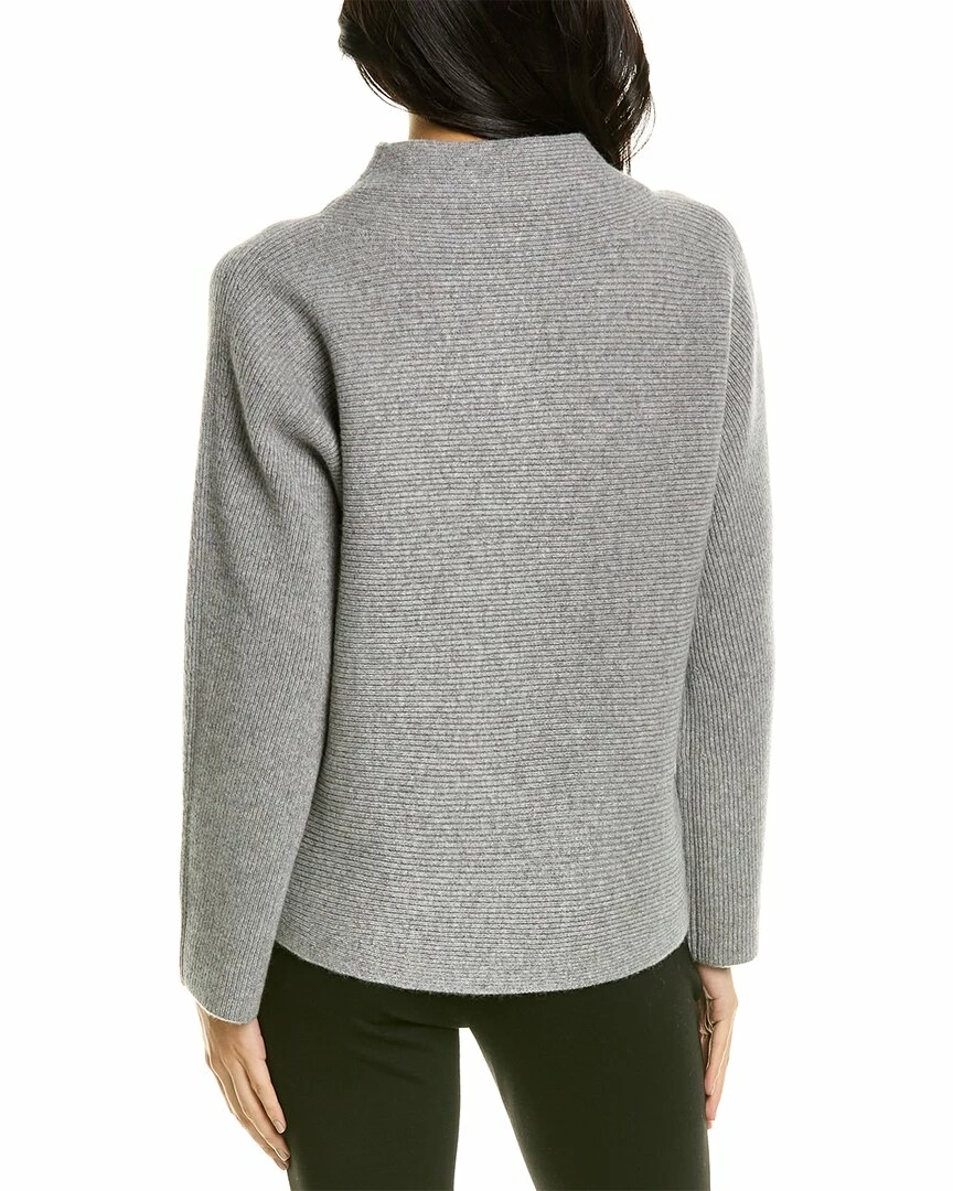 - Horizontal Rib Wool & Cashmere-Blend Sweater in medium grey with funnel neck and dolman sleeves