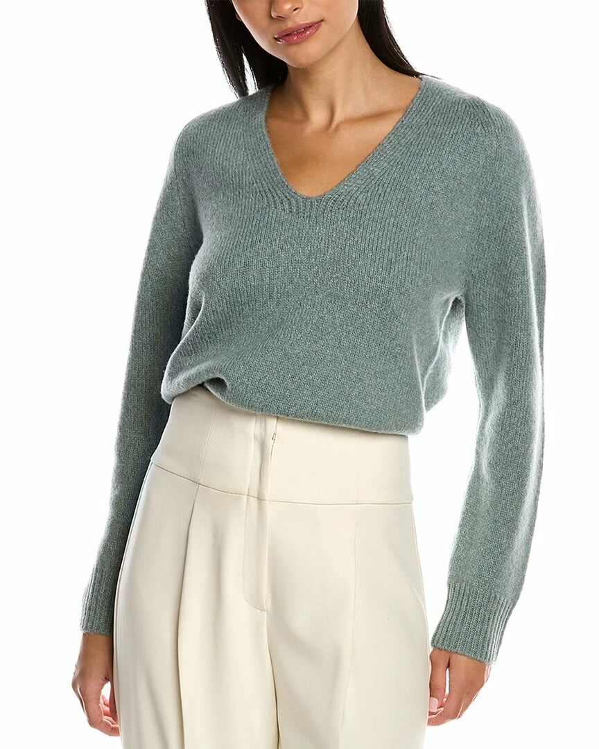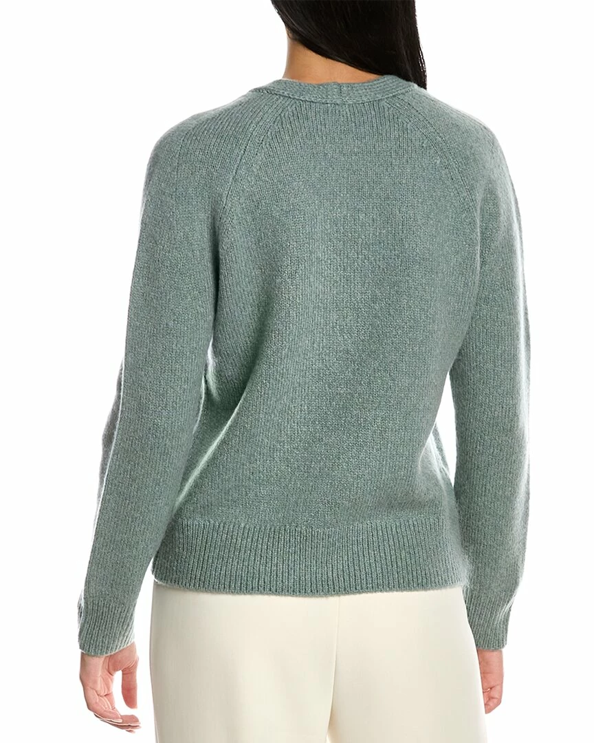 - Marled Wool & Cashmere-Blend Sweater in ice green with raglan sleeves and ribbed trim