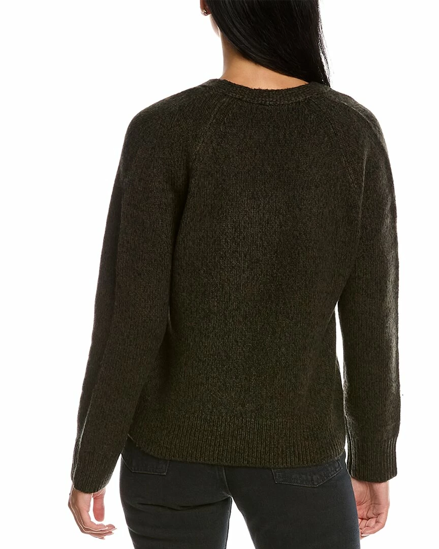 - Marled Wool & Cashmere-Blend Sweater in olive and black with raglan sleeves and ribbed trim