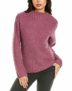 - Ribbed Funnel Neck Alpaca & Wool-Blend Sweater in dark hollyhock with ribbed knit, dropped-shoulder sleeves, and funnel neck