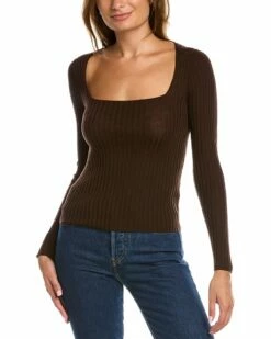 Vince Ribbed Square Neck Wool Sweater Women Sweaters & Knits