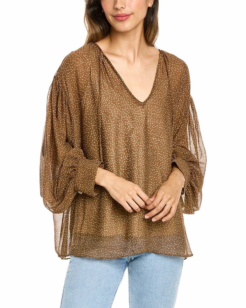 Vince Starry Dot Shirred Neck Blouse Women Tops