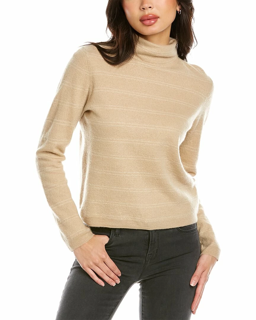 Vince Striped Fitted Turtleneck Cashmere Sweater Women Sweaters & Knits