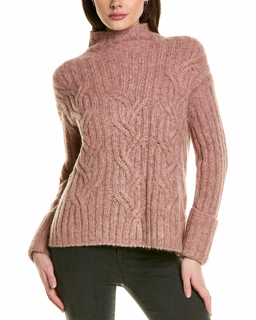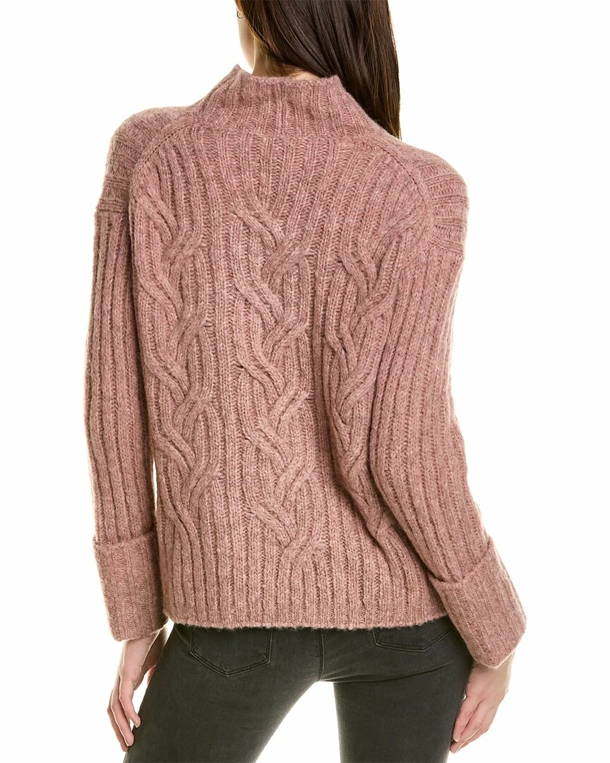 - Texture Cable Turtleneck Wool & Cashmere-Blend Sweater in rose with raglan sleeves and ribbed trim