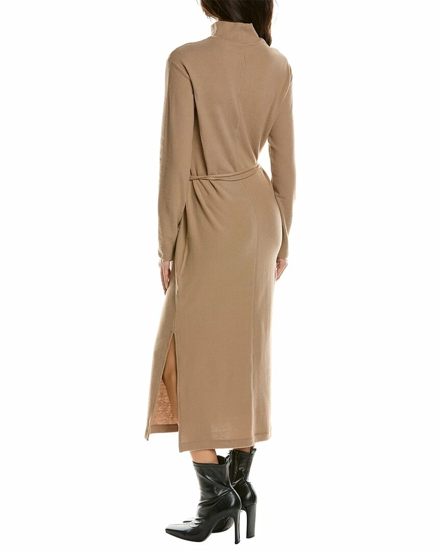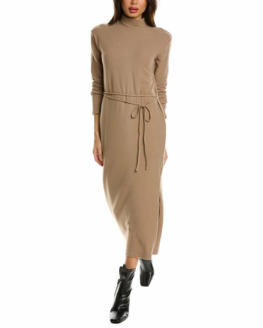 - Turtleneck Midi Dress in palomino with brushed knit, turtleneck, self-tie belt at waist and split hem